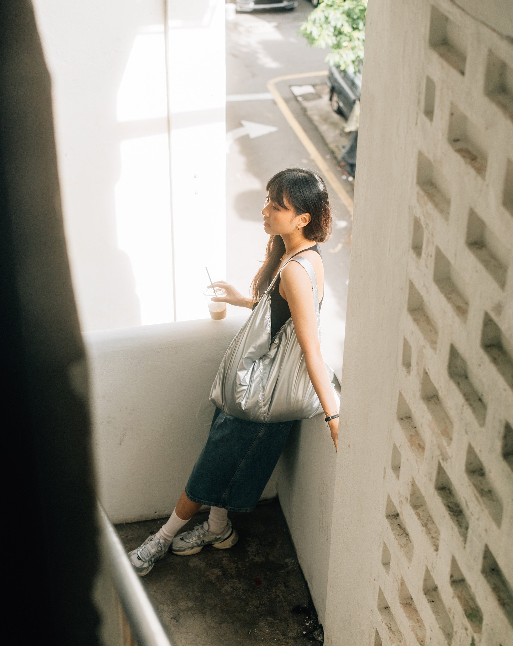 Bēru in Mercurial silver, same form and size as our original Bēru but now in metallic nylon to give it that liquid metal quality.